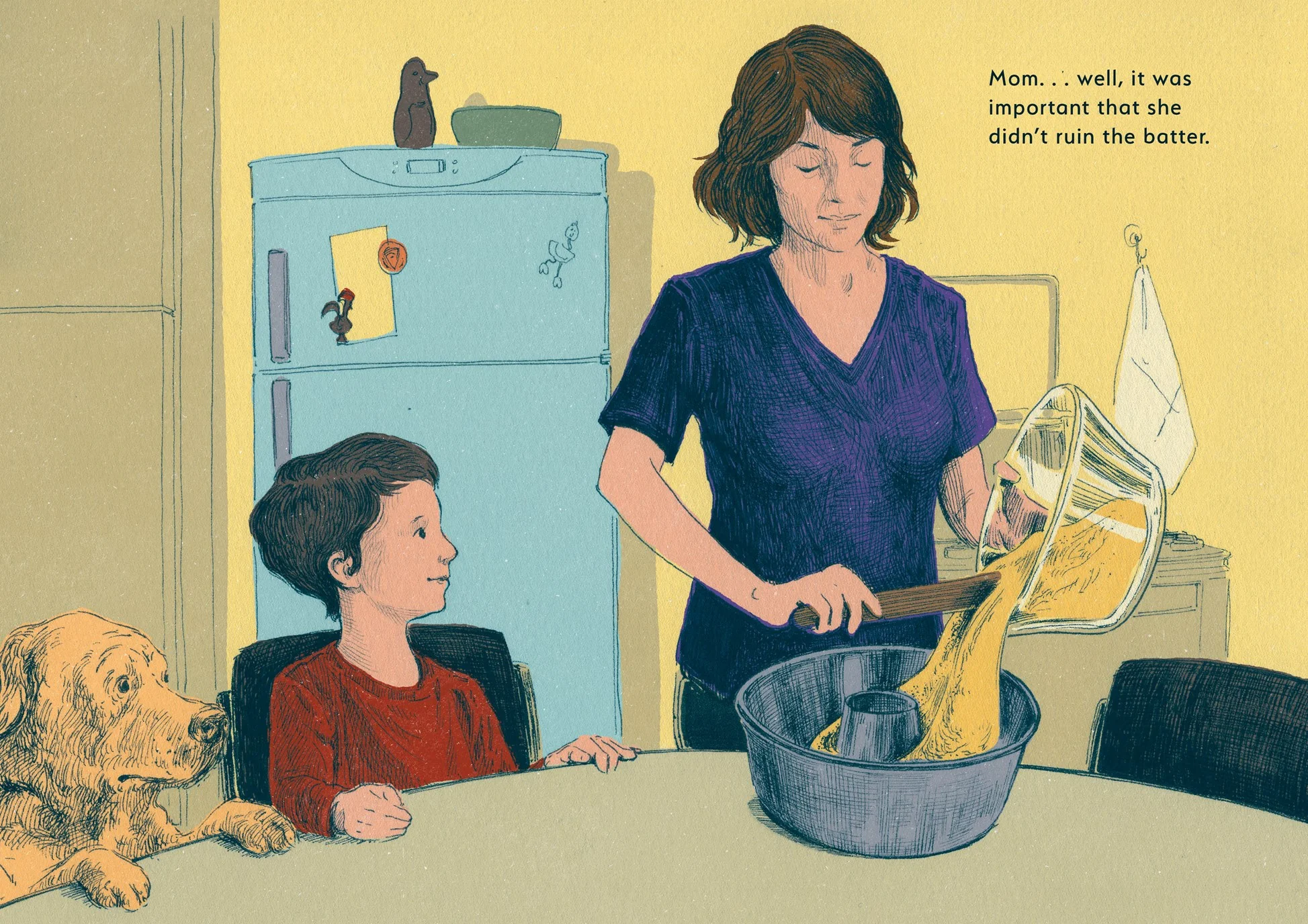 Instead, Martin invents a world adventure with his dog, Maize, braving extreme cold alongside penguins on ice caps, facing a dragon, confronting pirate ships, and crossing an arid desert on a camel’s back. When he returns from his travels happy and exhausted, he recounts his magical journey with Grandma, who marvels at his courage and wonders where he will go next.