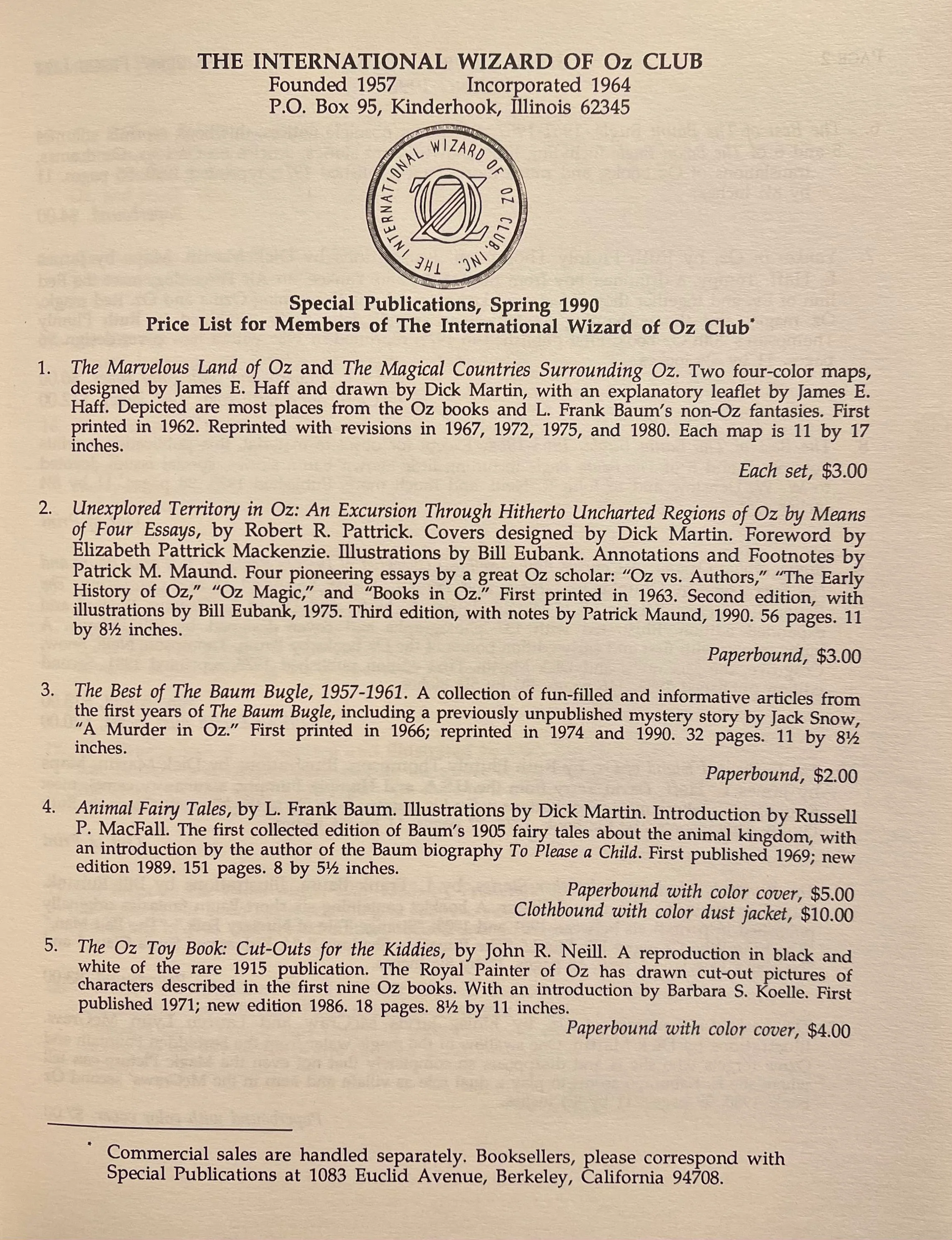 McGRAW, Eloise Jarvis. The Forbidden Fountain of Oz by Eloise Jarvis McGraw & Lauren Lynn McGraw. Illustrated by Dick Martin. [Kinderhook, IL]: The International Wizard of Oz Club, Inc. [1990]. 4to, 99pp + [4] advts. Color pictorial paper wrappers. Illustrations in b&w throughout. As new, in shrink-wrap, as issued. This paperback edition is no longer in print. The book is only available for purchase as a $25 hardcover.